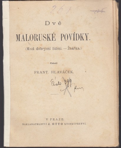Svazek obsahuje dvě samostatné ukrajinské povídky: Mezi dobrými lidmi — Ivan Franko (1856–1916) Franko je jeden z nejvýznamnějších ukrajinských spisovatelů, básník, prozaik, publicista a politický myslitel. Povídka tematizuje mezilidské vztahy, sociální prostředí a morální napětí v komunitě. Žhářka — Vasil Čajčenko (1863–1910) Čajčenko (též Vasyl, Vasyľ) patří k méně známým ukrajinským realistům. Povídka se zabývá provinčním prostředím, sociální nespravedlností a tragickým osudem ženy obviněné z žhářství.