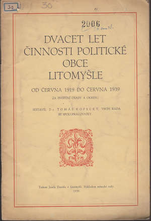 Dvacet let činnosti politické obce Litomyšle od června 1919 do června 1939Detailní informace