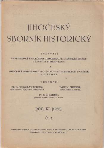 Jihočeský sborník historický roč. XI. (1938) č. 3Detailní informace