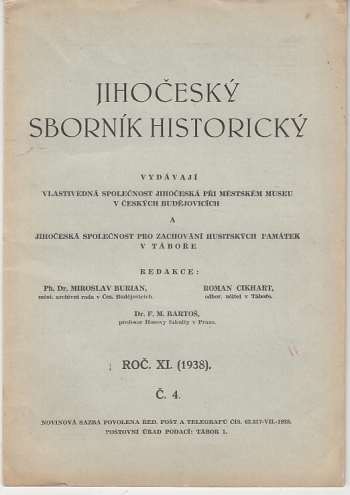 Jihočeský sborník historický roč. XI. (1938) č. 4Detailní informace