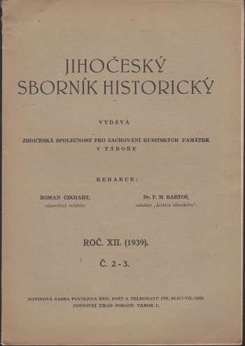 Jihočeský sborník historický roč. XII. (1939) č. 1