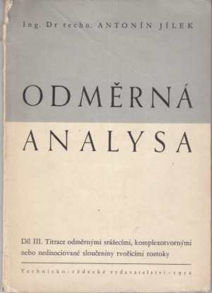 Odměrná analysa, díl III. Titrace odměrnými srážecímiOdměrná analysa. Díl III, Titrace odměrnými srážecími, komplexotvociované sloučeniny tvořícími roztoky / Antonín Jílek.