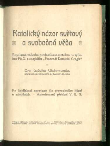 Katolický názor světový a svobodná vědaDetailní informace