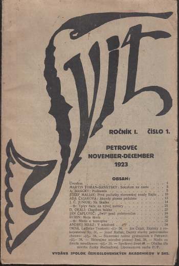 Svit, kultúrny časopis československého juhu, ročník I. Číslo 1