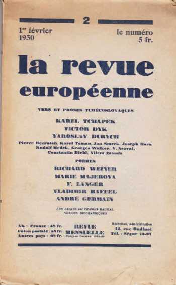 Vers et Proses Tchécoslovaques, La Revue Européenne No.2/1930