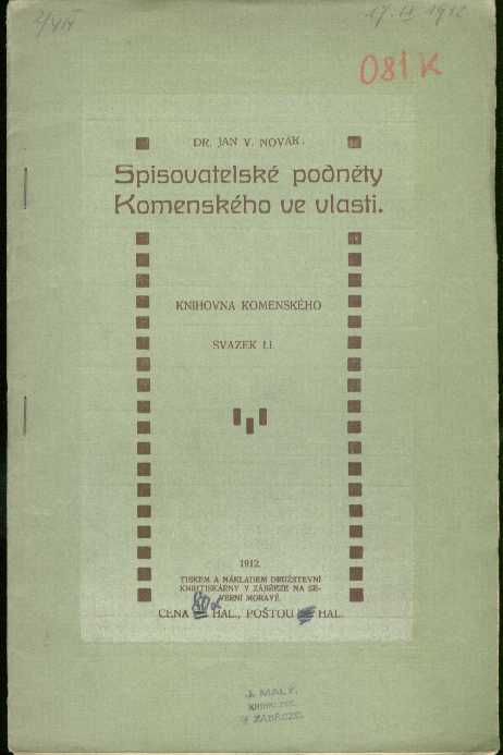 Spisovatelské podněty Komenského ve vlastiDetailní informace