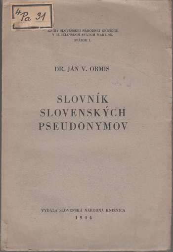 Slovník slovenských pseudonymovDetailní informace