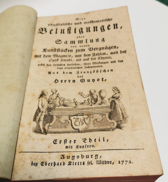 Toto dílo je encyklopedie experimentální zábavy 18. století, určená pro vzdělané publikum i domácí salony. Obsahuje: praktické pokusy s magnety, optikou, elektřinou, čísly, kapalinami, návody na výrobu přístrojů (např. laterna magica, optické klamy), vysvětlení jevů a jejich příčin, ilustrované tabule s technickými schématy. Guyot byl průkopníkem popularizace vědy, jeho dílo předchází pozdější „kabinetní fyzice“ a ovlivnilo i vývoj didaktických pomůcek. Dva díly v jednom svazku. Obsahuje složené rytiny pokusů 23 v prvním dílu a 16 ve druhém. Mimořádně zachovalý výtisk.