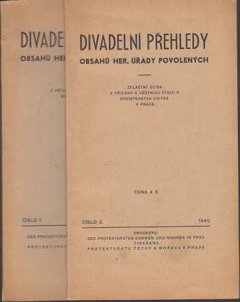 Divadelní přehledy 1. a 2. sv. obsahů her, úřady povolenýchDetailní informace