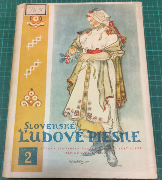 Ed. Piesňové zbierky odd. hudobnej folkloristiky Ústavu pre hudobnú vedu SAV. V knize je razítko knihovny nakladatelství SPN. Toto není sbírka Bély Bartóka, Tato kniha navazuje na Bart´kovu sbírku.